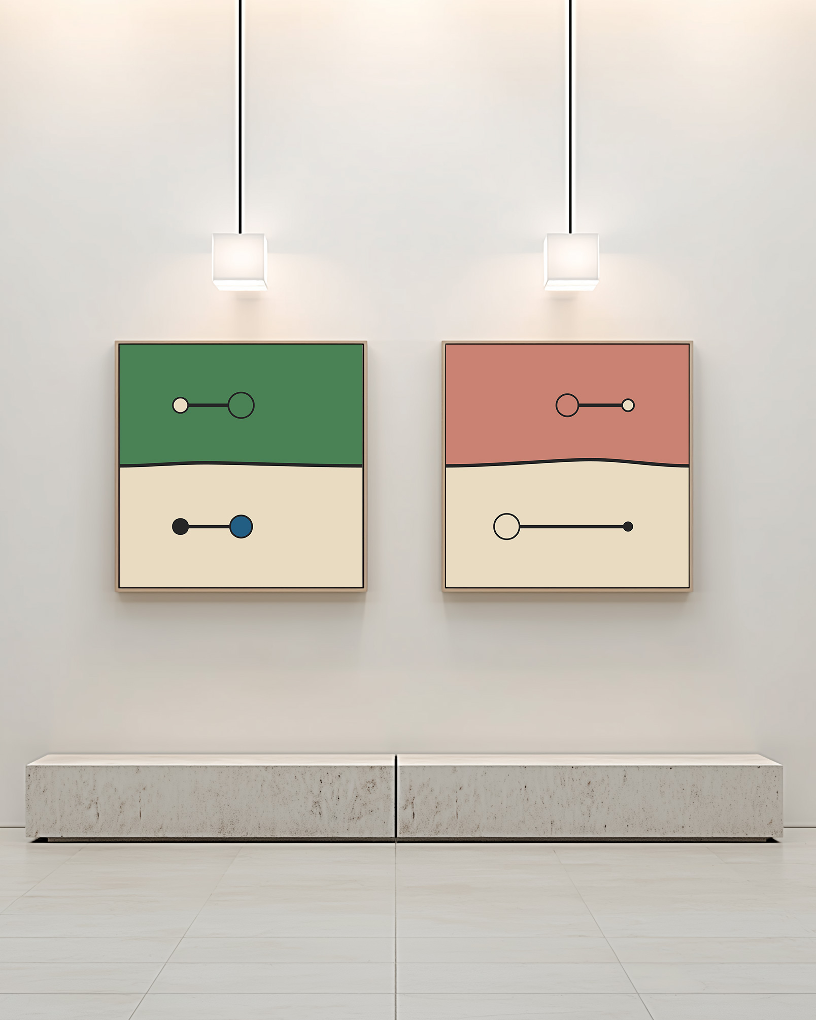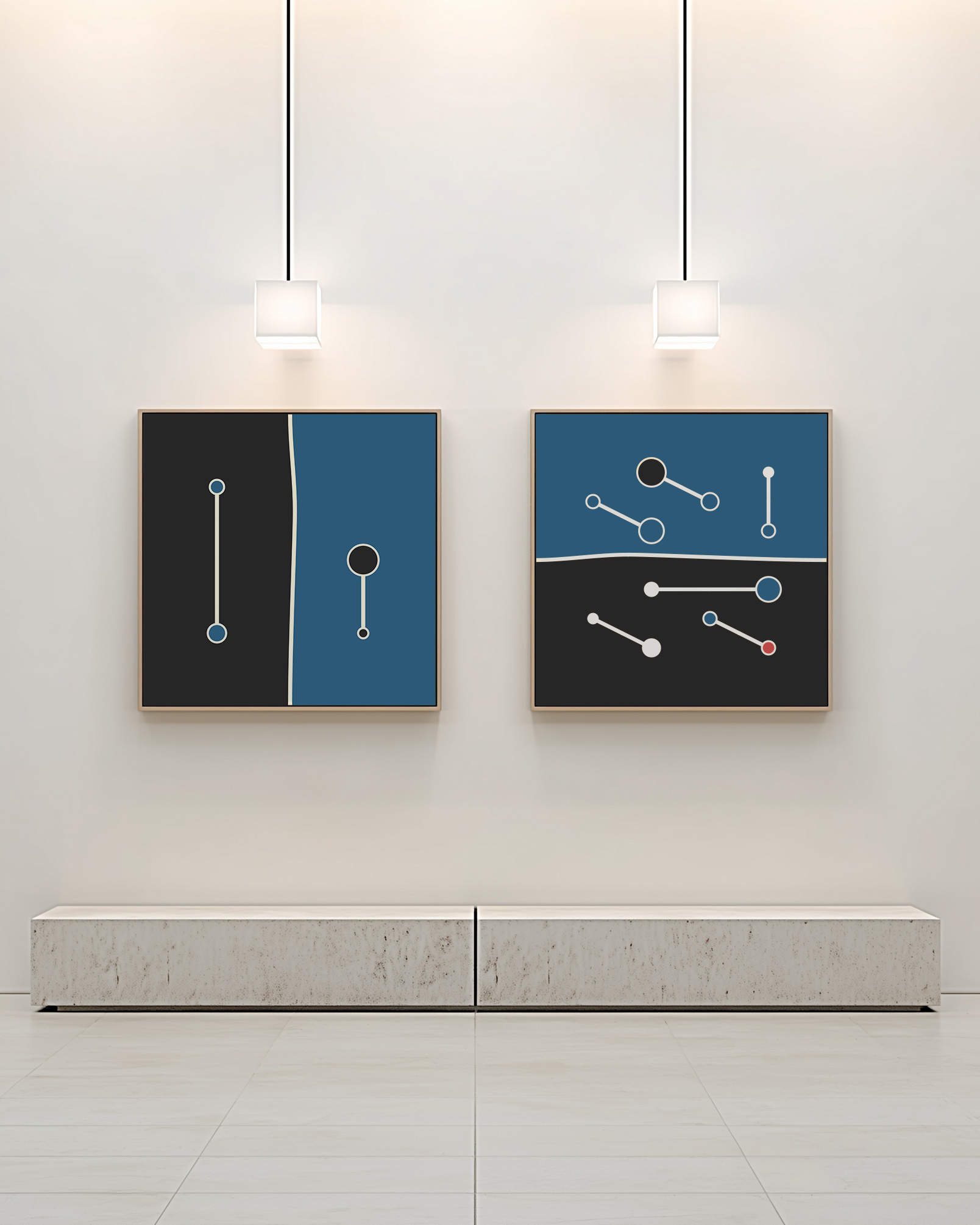 The collection opens up many easy ways to pair two or more artworks. Combine different colors, grid sizes, or align the long string across several artworks. There are countless variations to explore. See a few examples below: